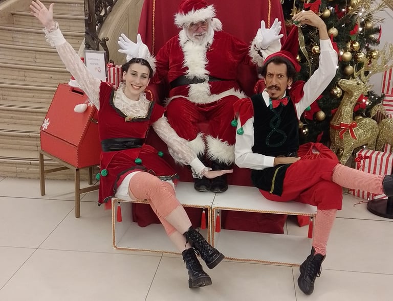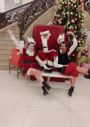 Personajes en vivo: Papá Noel, los Reyes Magos, Grinch, Duendes, Hadas, y todo un universo de figuras que interactúan.